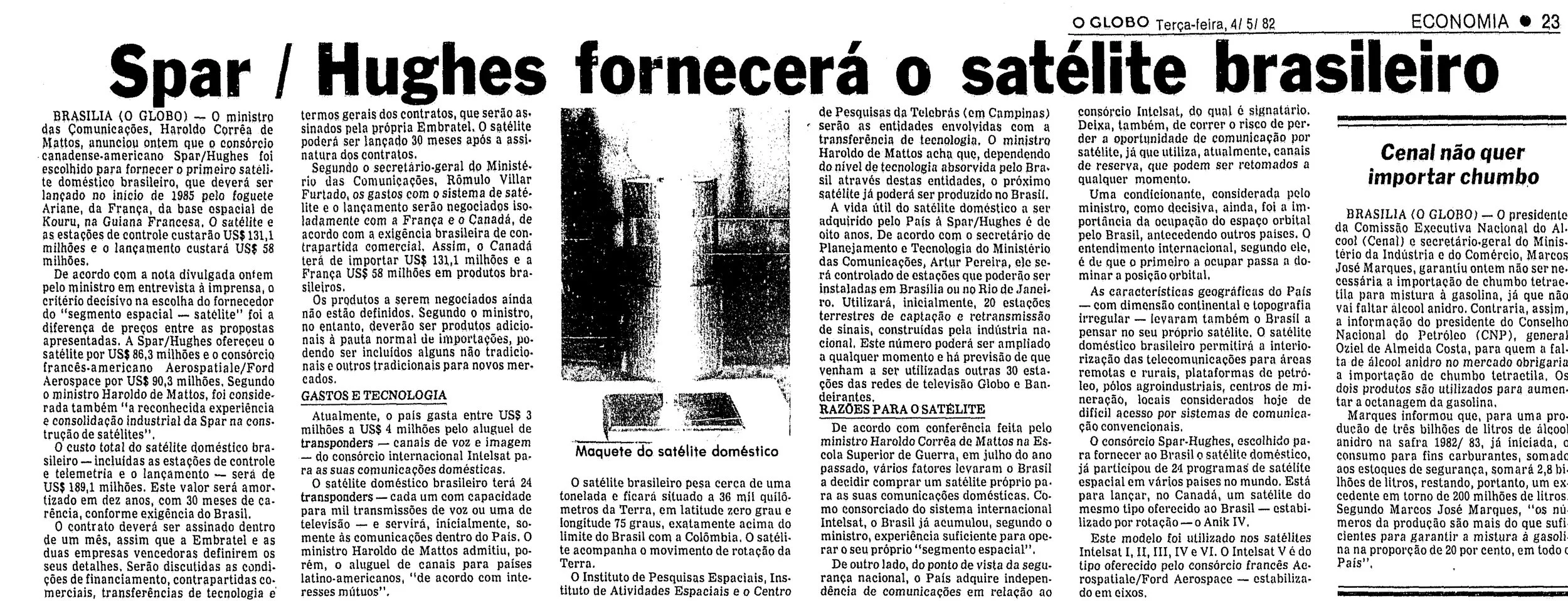 “Defect in satellite may influence Brazil’s decision” O Globo, April 20th, 1982