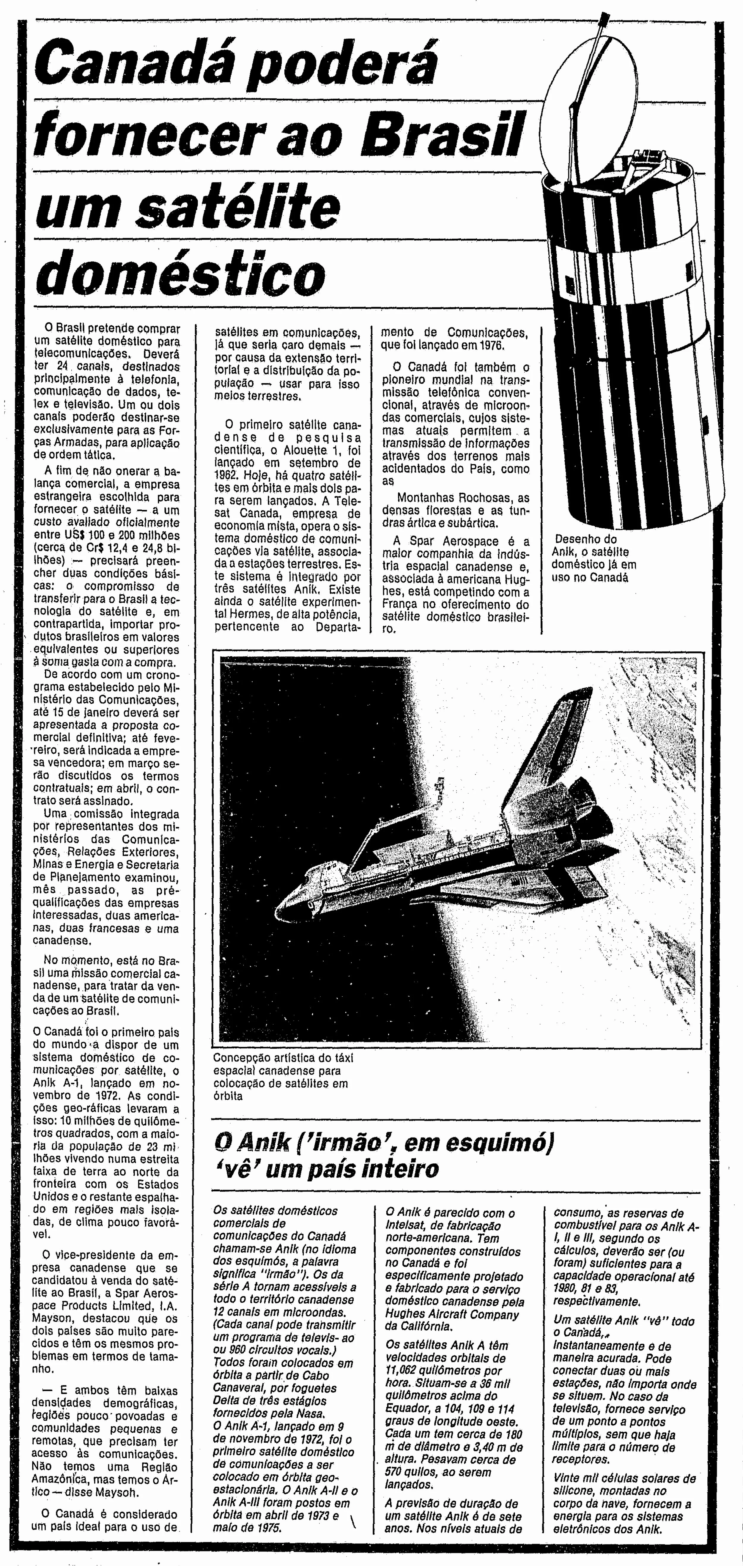 “Canada may supply Brazil with a domestic satellite,” O Globo, December 14th, 1981.
